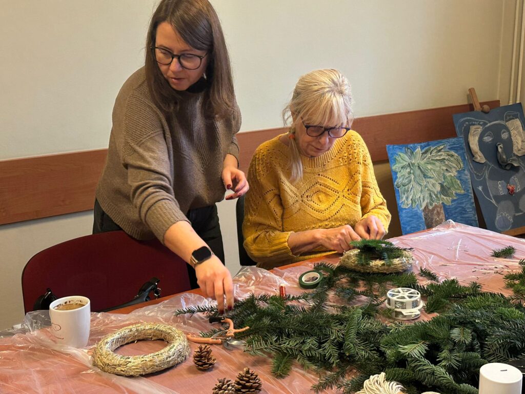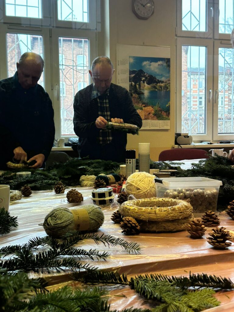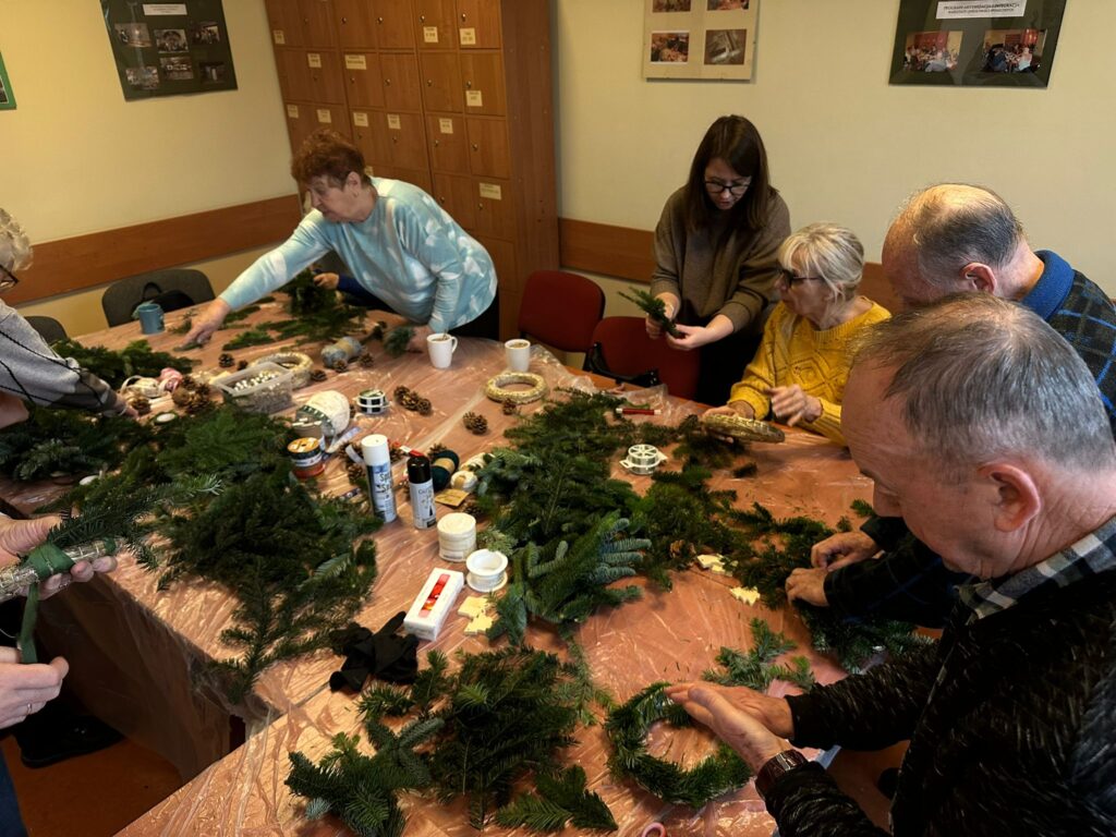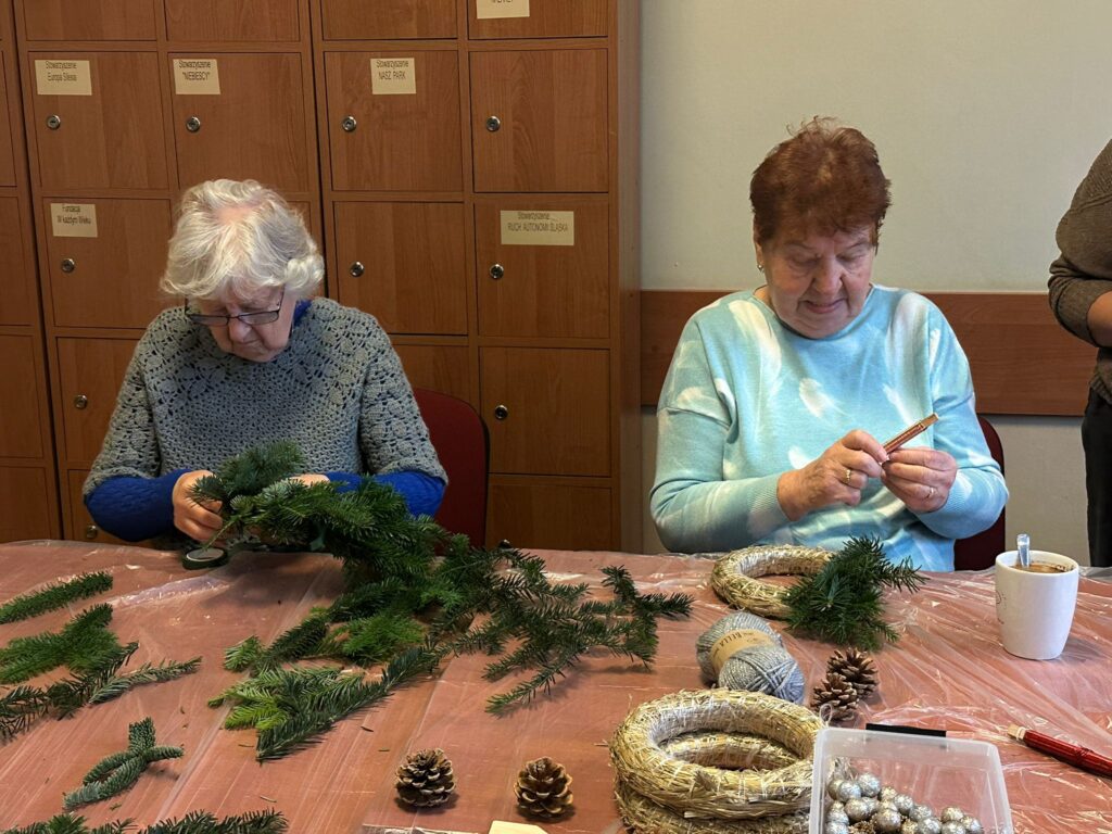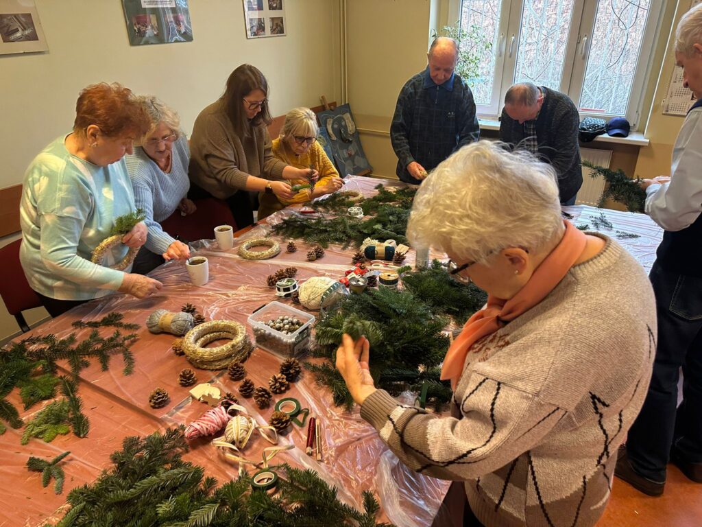 Dziś w Centrum Aktywizacji Społecznej w ramach zajęć ze zdrowego stylu życia nasi seniorzy wykonywali stroiki świąteczne. Zajęcia manualne tego typu oprócz walorów odprężająco relaksacyjnych stanowią źródło aromaterapii. Zapach świeżej jodły roznosił się po całym budynku. Pięknie wykonane stroiki z pewnością będą ozdobą stołu wigilijnego.