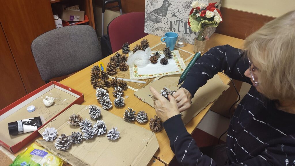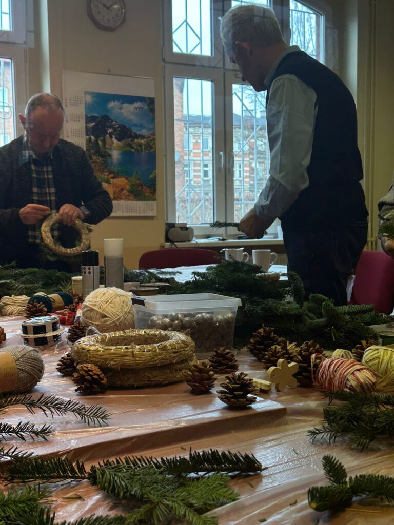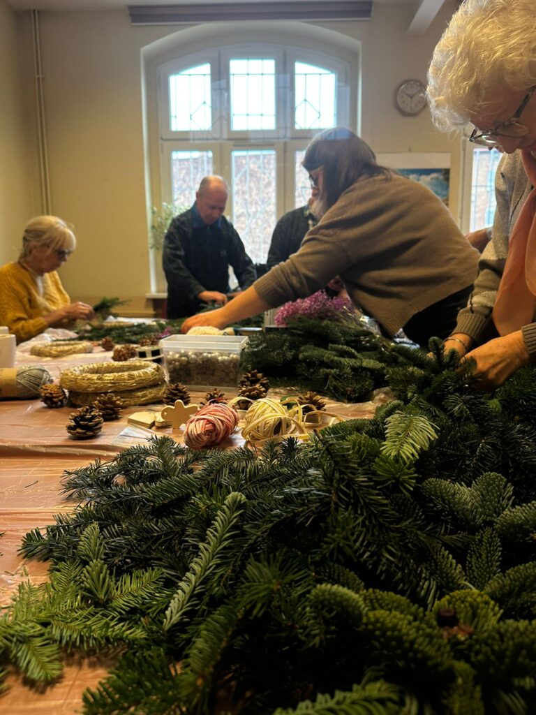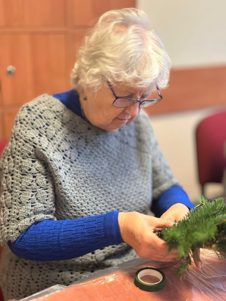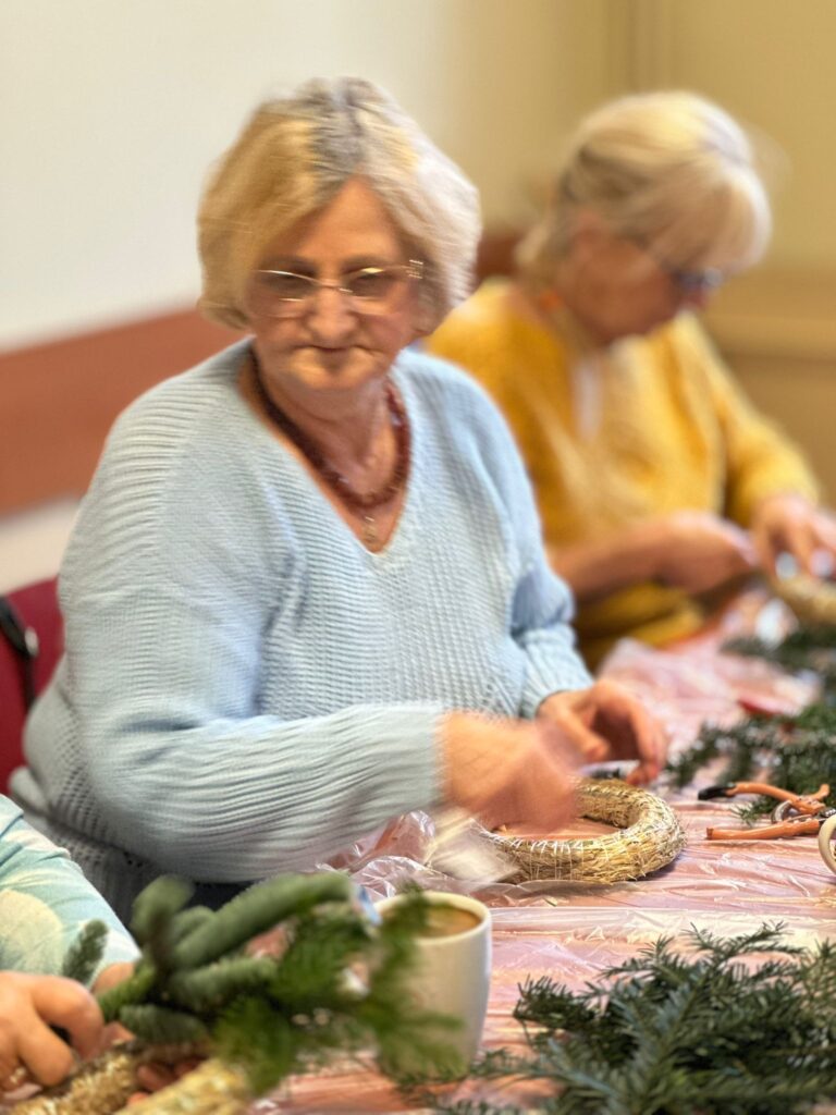 Dziś w Centrum Aktywizacji Społecznej w ramach zajęć ze zdrowego stylu życia nasi seniorzy wykonywali stroiki świąteczne. Zajęcia manualne tego typu oprócz walorów odprężająco relaksacyjnych stanowią źródło aromaterapii. Zapach świeżej jodły roznosił się po całym budynku. Pięknie wykonane stroiki z pewnością będą ozdobą stołu wigilijnego.